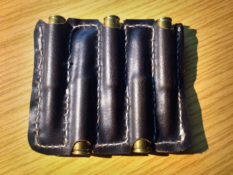 Hier lag noch ein Rest vegan/vegetabil/debil-, superöko- und garantiert chromfrei gegerbtes Leder einer Kuh, welche ihre Haut freiwillig hergegeben hat, herum und da dieses Material, über jeglichen Zweifel höchst erhaben und vermutlich positive esoterische Energien auf die Geschosse übertragend, durch nichts anderes übertroffen werden kann, beschloss ich daraus ein Etui zu nähen.